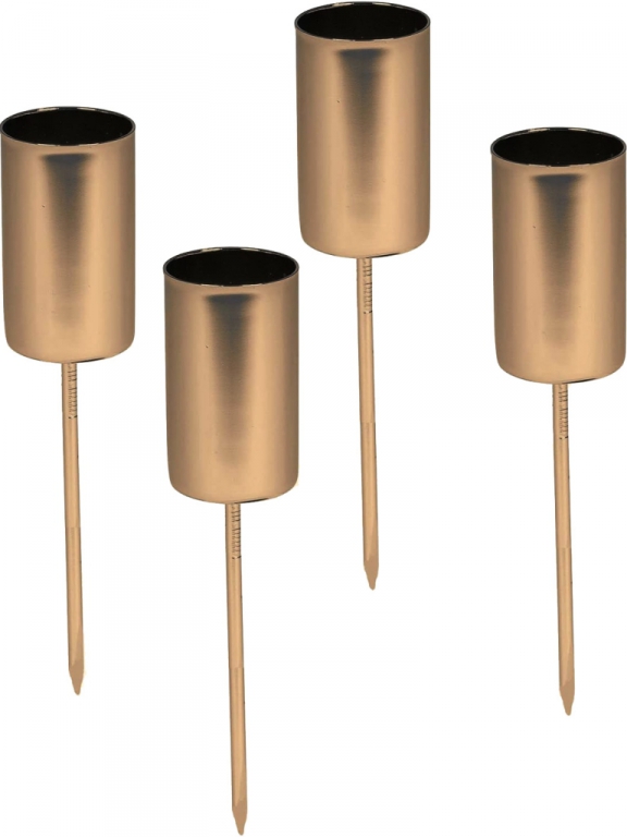 Elegantný kovový podstavec na kónickú sviečku v matnom zlatom prevedení je praktickým doplnkom pre výrobu adventných vencov a vianočných aranžmánov.