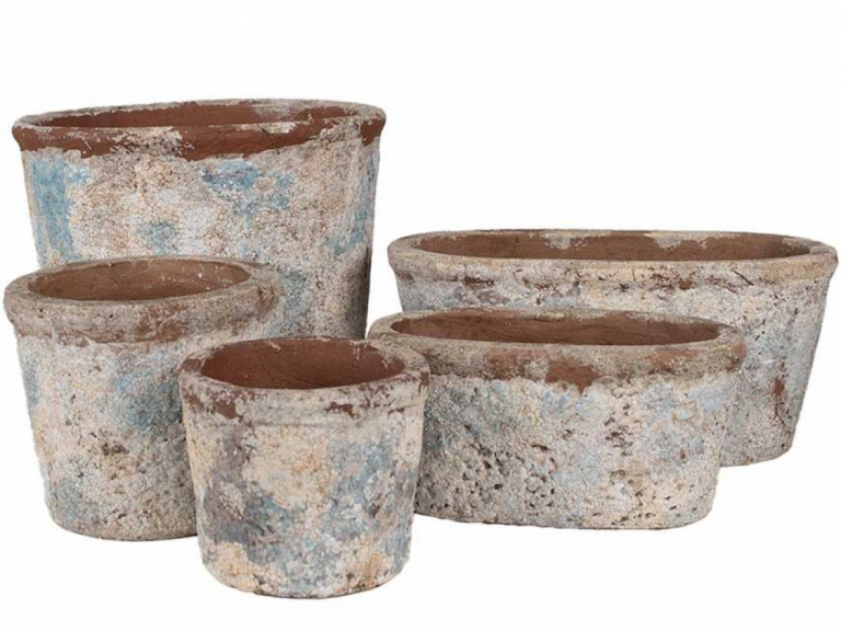 Rustikálny kvetináč Clayre & Eef s autentickou patinou a efektom popraskanej glazúry vnesie do interiéru šarm francúzskeho vidieka. Každý kus je originál, s jemnými farebnými odchýlkami v odtieňoch hnedej, béžovej a modrosivej, ktoré mu dodávajú charakter a osobitosť.