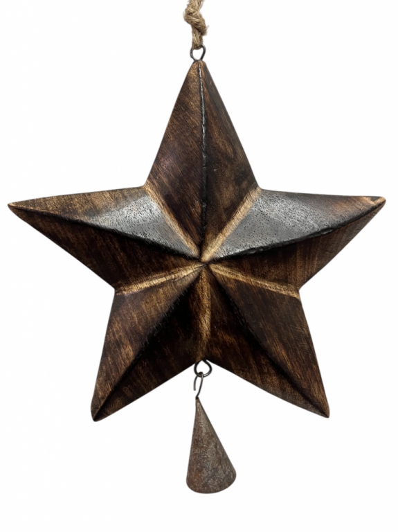 Masívna hviezda z mangového dreva s jemne patinovaným kovovým zvončekom je nádhernou prírodnou dekoráciou, ktorá zaujme svojou jednoduchosťou a eleganciou. Každý kus je originál – ručne opracované drevo má hladký povrch s krásnou kresbou a teplým odtieňom.