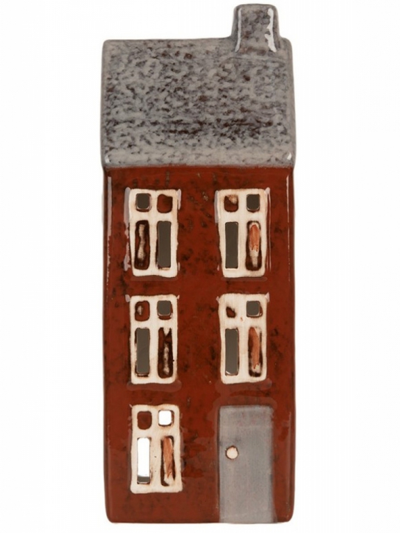 Tento keramický svietnik Clayre & Eef v tvare domčeka prinesie do vášho domova teplo, svetlo a útulnú atmosféru po celý rok. Kombinácia hnedého glazúrovaného povrchu a jemne sivej strechy pôsobí elegantne a prirodzene, vďaka čomu sa hodí do moderných aj vidieckych interiérov.