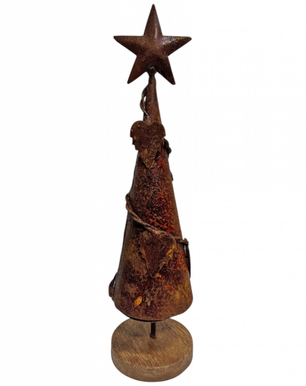 Originálna dekorácia s rustikálnym nádychom, ktorá vynikne v každom zimnom aranžmáne. Stromček je vyrobený z kovu s hrdzavým efektom, ktorý mu dodáva autentický industriálny vzhľad. Ozdobný motív listov jemne obopína celý stromček, čím pôsobí prirodzene a zároveň elegantne.