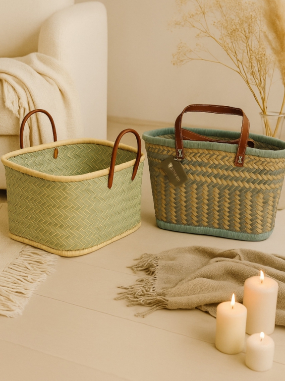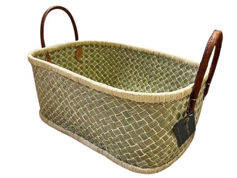 Tento veľký ručne robený kôš z Ghany je vyrobený z odolnej trávy nazývanej olifantská tráva (elephant grass) a doplnený o pravé kožené rúčky. Ide o poctivý fair trade produkt, ktorý vzniká vďaka práci miestnych remeselníkov – každý kus je originál, vytvorený s ohľadom na tradíciu a prírodu.