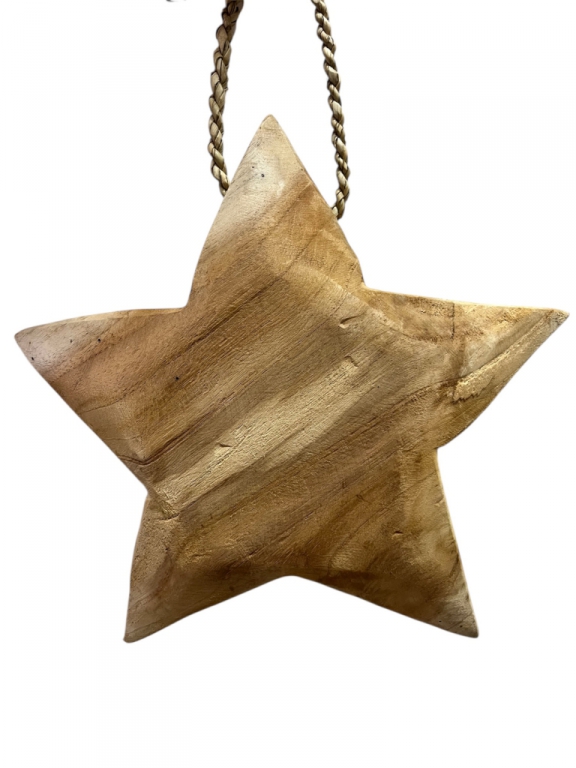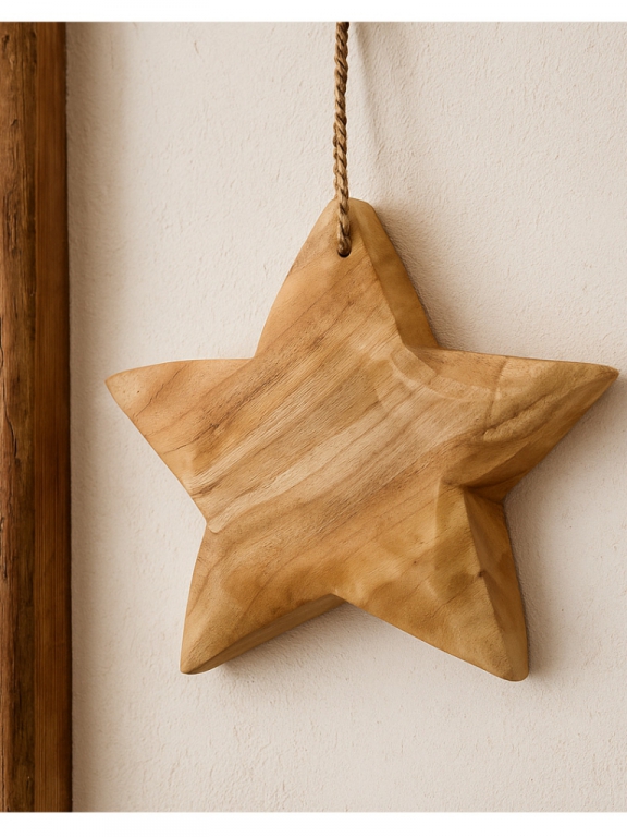 Ručne opracovaná masívna hviezda z prírodného dreva pôsobí autenticky a teplo. Každý kus je originál s jemne odlišnou kresbou dreva. Zadná strana je hladká a plochá, takže sa dá jednoducho zavesiť na stenu alebo použiť ako dominantný prvok vo veľkom (XXL) venci či vianočnej dekorácii.