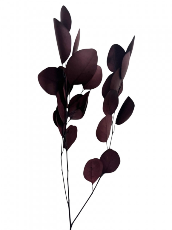 Elegantný stabilizovaný eukalyptus v odtieni marsala je nadčasový doplnok, ktorý dodá aranžmánom hĺbku, noblesu a moderný charakter. Jeho hladké, okrúhle lístky v sýtej vínovo-červenej farbe pôsobia luxusne a výborne sa kombinuje so sušenými kvetmi, papraďou, trávami aj zimnými dekoráciami.