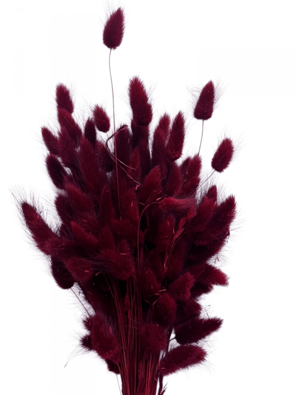 Sýte - vínovo červené sušené chvostíky Lagurus ovatus patria medzi najobľúbenejšie prírodné dekorácie v moderných aranžmánoch. Ich jemná, hebká štruktúra a sýta tmavomodrá farba dodajú interiéru elegantný, výrazný aj jemne bohémsky akcent.