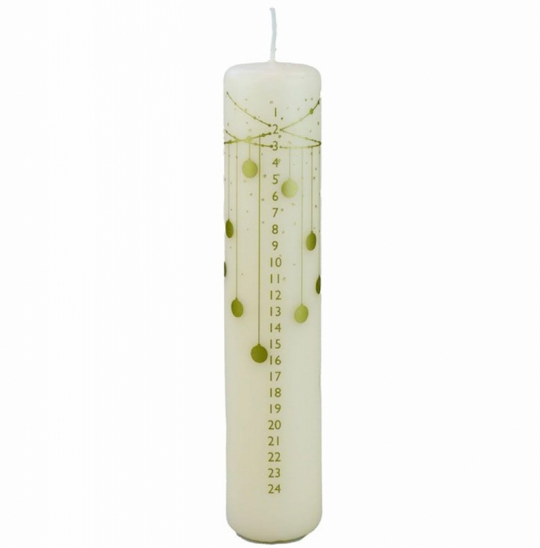Adventná sviečka čierna so zlatými číslami 24 cm – zelenozlatý nádych