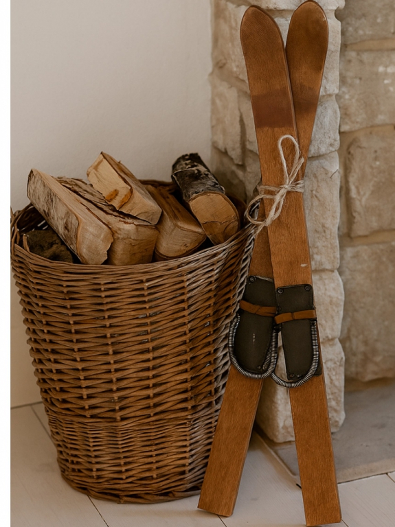 Tieto dekoratívne drevené lyže prinesú do interiéru nádych zimnej nostalgie a útulnej horskej atmosféry. Pôsobia autenticky a štýlovo – akoby pochádzali z malej chaty uprostred hôr.