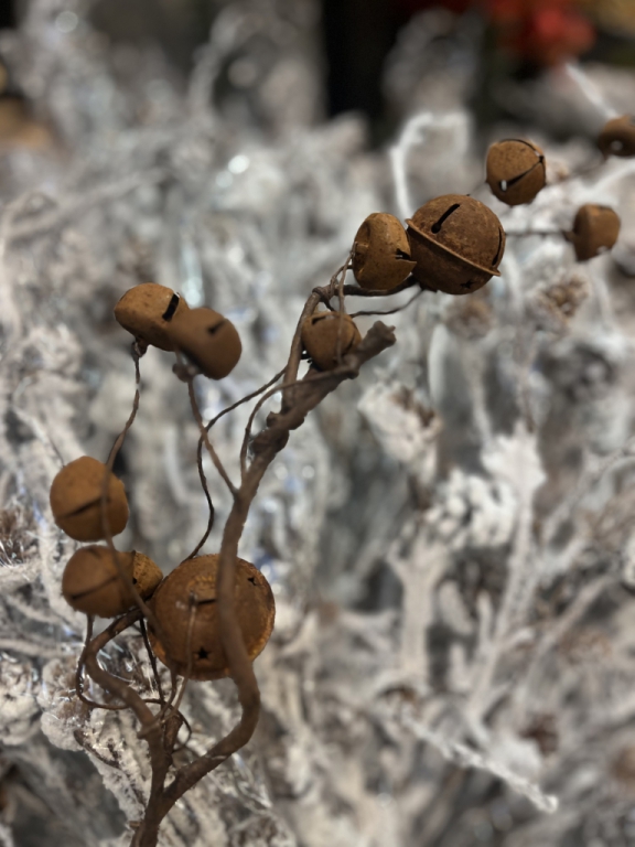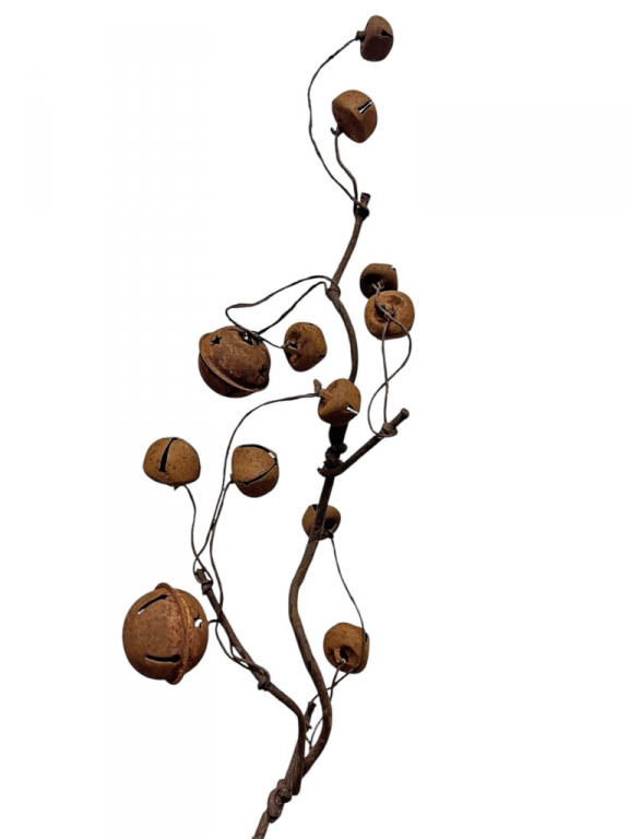 Dekoratívny konár s kovovými rolničkami rôznych veľkostí pôsobí prirodzene a útulne – ako stvorený pre vianočné a zimné aranžmány. Rolničky majú jemný patinovaný povrch v teplom hrdzavom odtieni a spolu s konárikom vytvárajú nádherný rustikálny akcent.