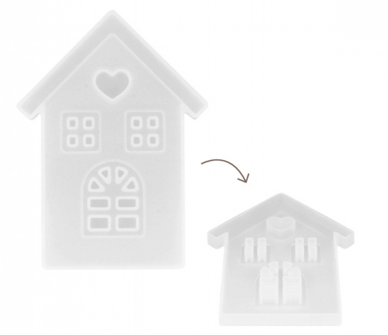 Silikónová forma Artemio v tvare romantického domčeka je perfektná na tvorenie jemných zimných dekorácií. S detailmi okien, srdiečkom a oblúkovými dverami vytvorí krásny odliatok, ktorý môžete ďalej maľovať, patinovať alebo použiť v aranžmánoch.