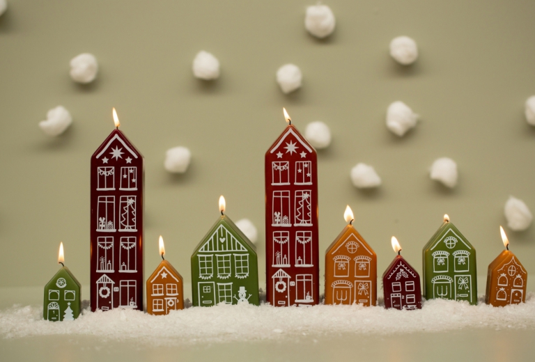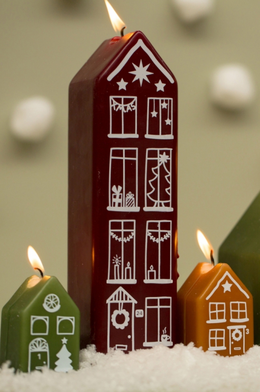 Bordová vianočná sviečka v tvare útulného domčeka je presne ten detail, ktorý v interiéri vytvorí teplo aj bez veľkej snahy. S čistou bielou grafikou pôsobí jemne nostalgicky a pri horení vykúzli pokoj, ktorý máme všetci na Vianociach radi.