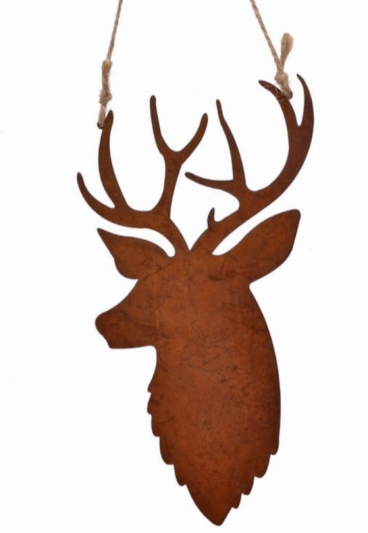Závesná kovová dekorácia jeleň hrdzavý efekt 16 cm – vidiecka vianočná ozdoba