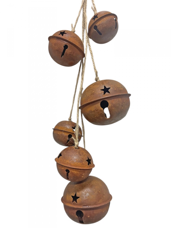 Originálna závesná dekorácia z kovových rolničiek s autentickým hrdzavým efektom prinesie do interiéru jedinečnú vintage atmosféru. Rolničky sú zavesené na jutovom špagáte a ich jemný cinkot navodí pocit pokoja a tepla domova.